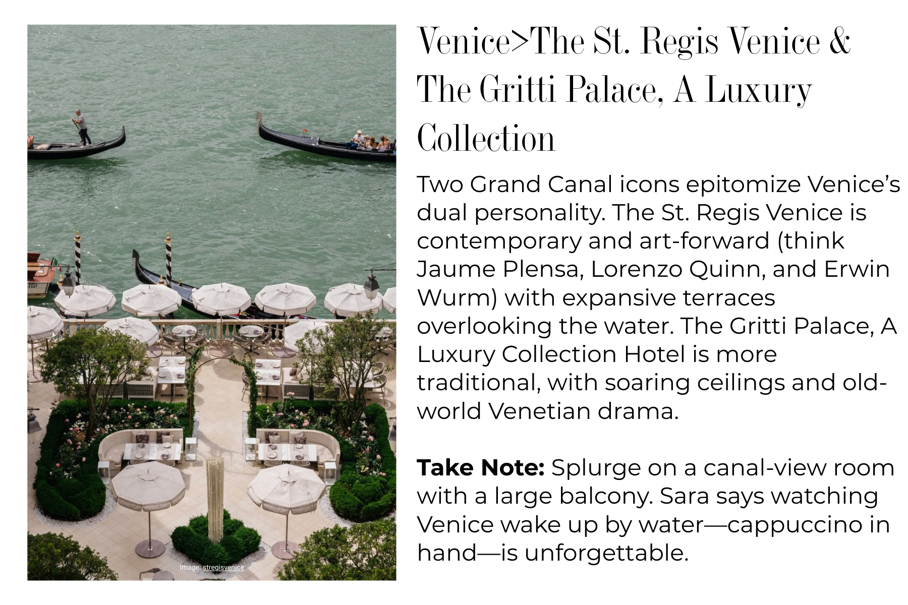 Venice Beyond the Crowds. Private boat excursions to Murano, Burano, and Torcello, exclusive glass-blowing demonstrations, and a private visit inside St. Mark’s Clock Tower showcases a more intimate Venice. Experiencing the famous city from above—in addition to from the water—changes everything.